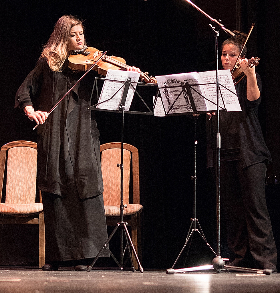 02 Deolinda e Georgiana 17 Ottobre 2017 979 × 1024 Don Giovanni: seduttore, ingannatore o solo un pirla? Georgiana Bordeianu (viola) e Deolinda Giovanettina (violino) hanno accompagnato il racconto di Donna Anna.