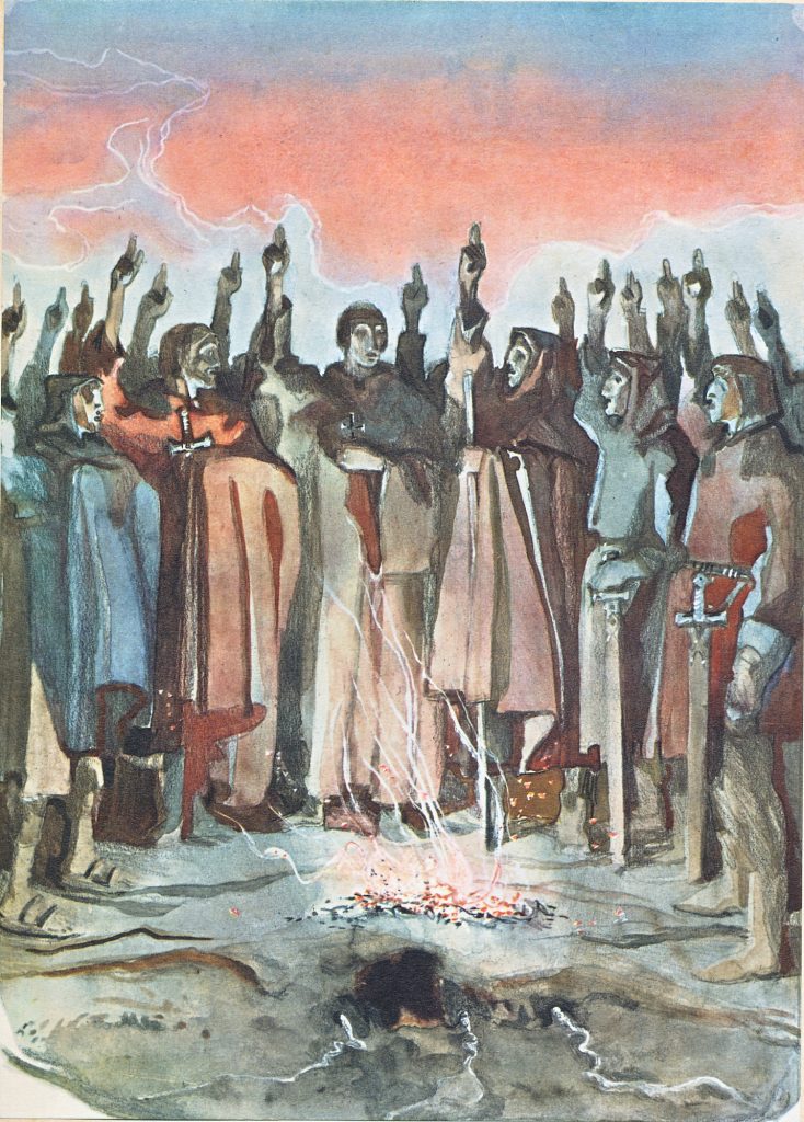 Si giuri. – Esser vogliamo un indiviso popolo di fratelli, eternamente stretti nella sventura e nel periglio. Liberi come gli avi, e pria la morte che, vivendo, il seervaggio. (Friedrich Schiller, “Guglielmo Tell”, Atto II, scena II)